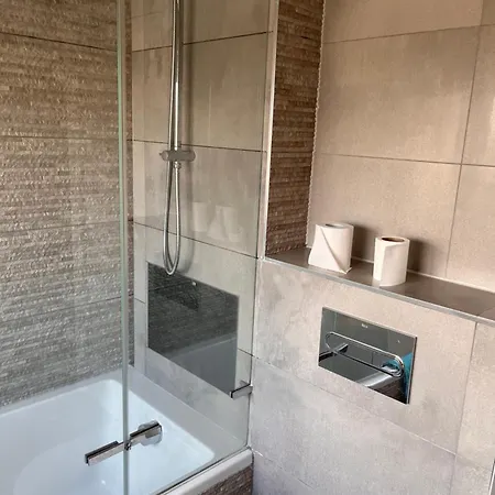 De er udstyret med et badekar og en bruser.